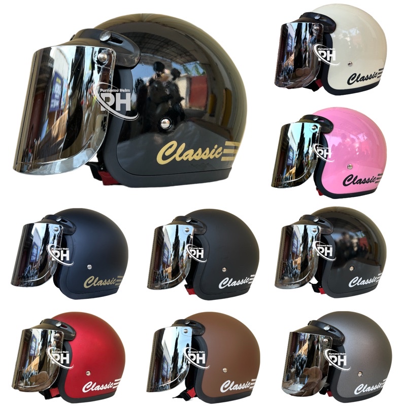 Otomotif > Aksesoris Pengendara Motor > Helm & Aksesoris Pengendara Motor > HELM BOGO RETRO CLASSIK KACA SILVER PELANGI