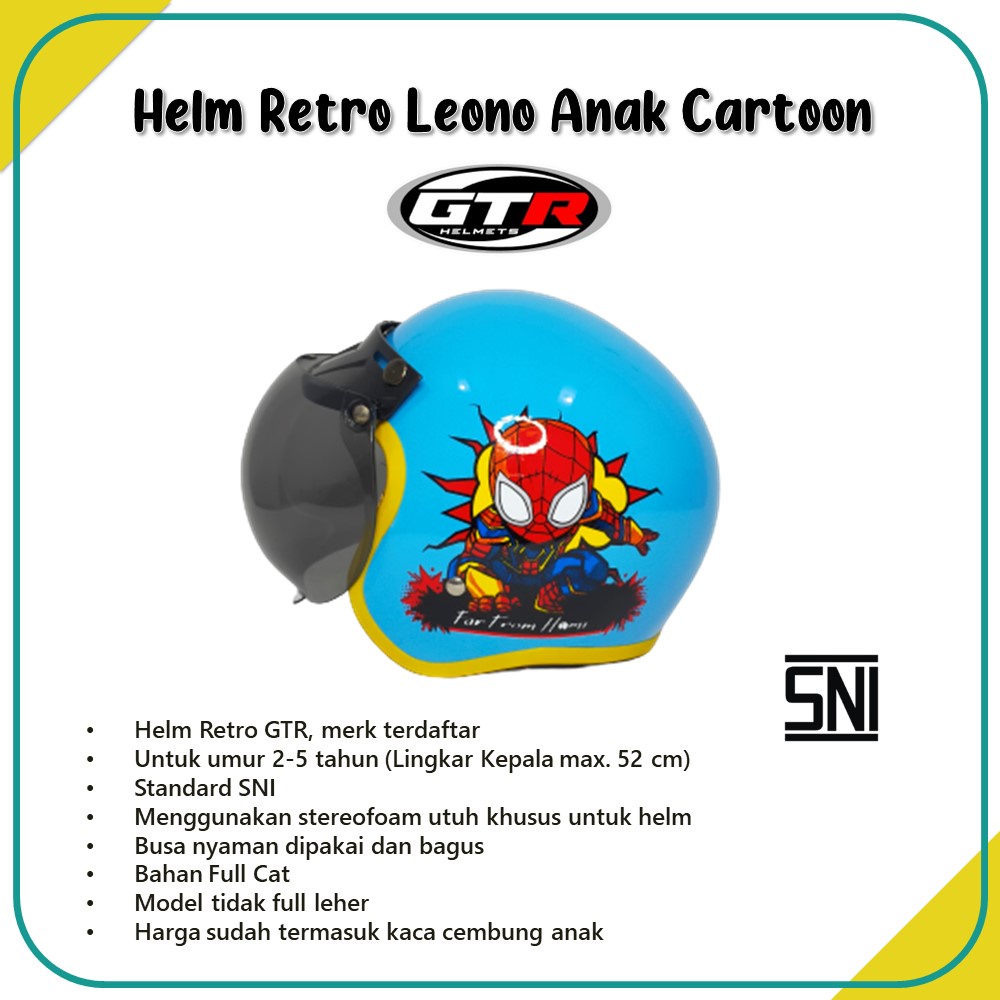 Detail HELM BOGO RETRO LEONO FULL CAT ANAK MOTIF KARTUN LUCU DAN UNIK