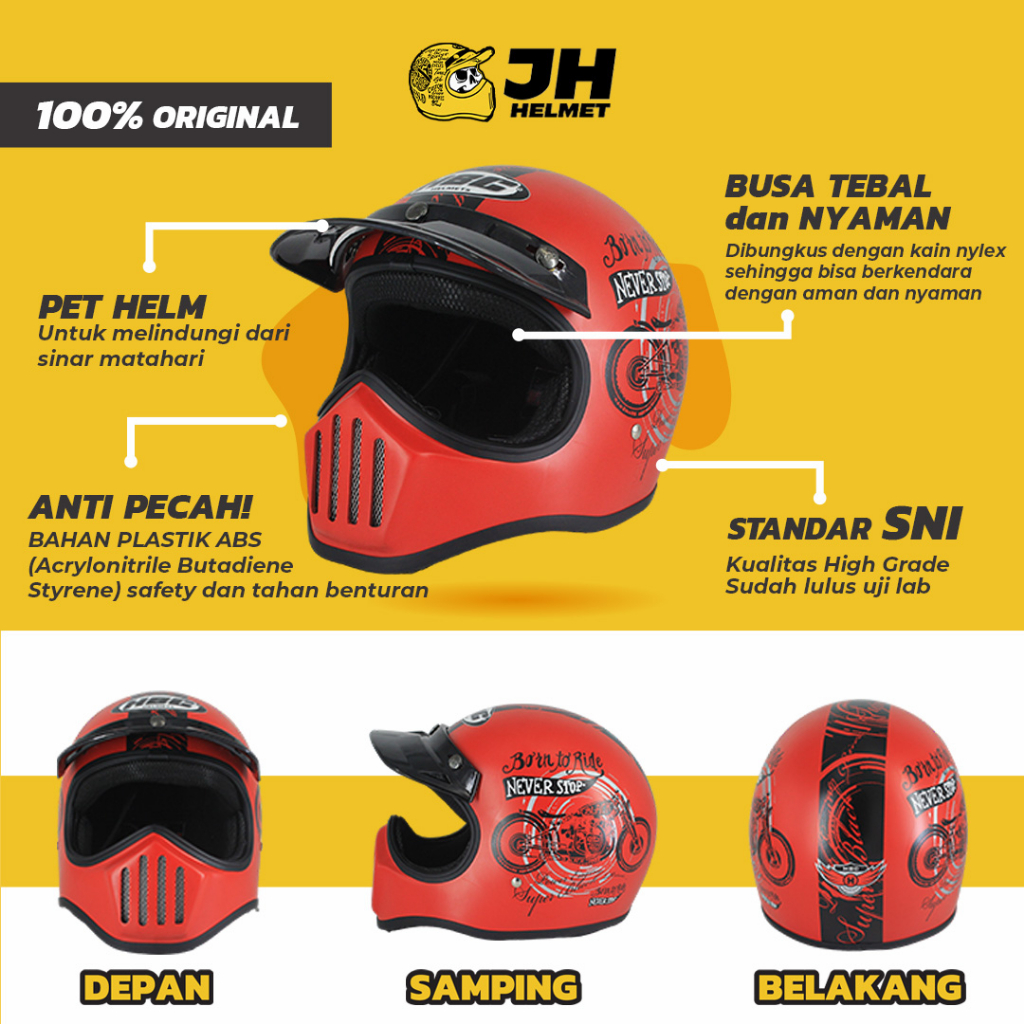Video perkenalan produk Helm Cakil HBC Born To Ride Red Doff + FREE GOGGLE | Retro Full Face | JUAL HELM. Sumber: Shopee.