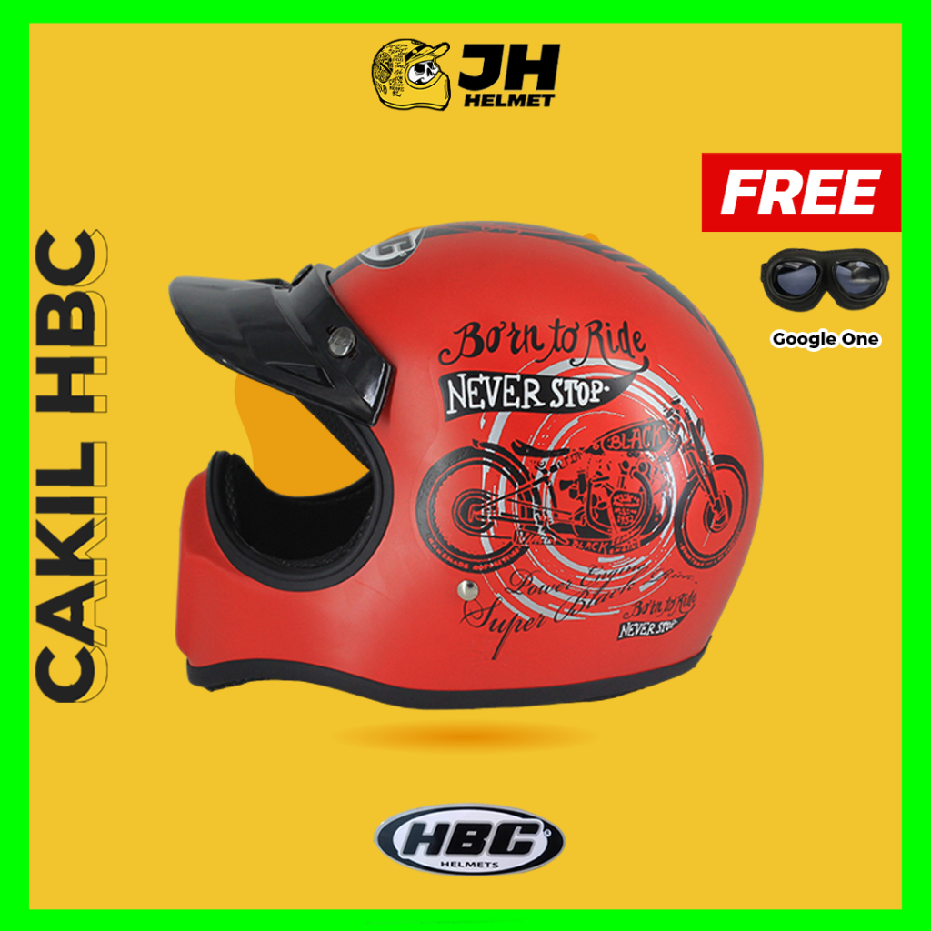 Otomotif > Aksesoris Pengendara Motor > Helm & Aksesoris Pengendara Motor > Helm Cakil HBC Born To Ride Red Doff + FREE GOGGLE | Retro Full Face | JUAL HELM
