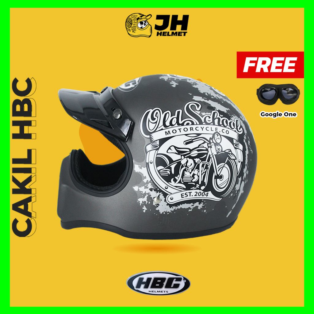 Otomotif > Aksesoris Pengendara Motor > Helm & Aksesoris Pengendara Motor > Helm Cakil HBC New Old School Grey Doff + FREE GOGGLE | Retro Full Face | JUAL HELM