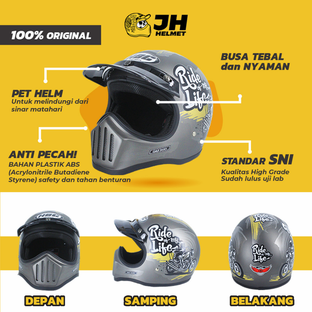 Video perkenalan produk Helm Cakil HBC Ride Of Life Grey Doff + FREE GOGGLE | Retro Full Face | JUAL HELM. Sumber: Shopee.
