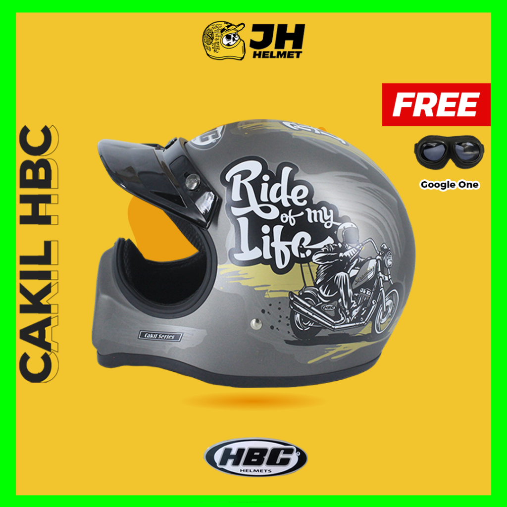 Otomotif > Aksesoris Pengendara Motor > Helm & Aksesoris Pengendara Motor > Helm Cakil HBC Ride Of Life Grey Doff + FREE GOGGLE | Retro Full Face | JUAL HELM