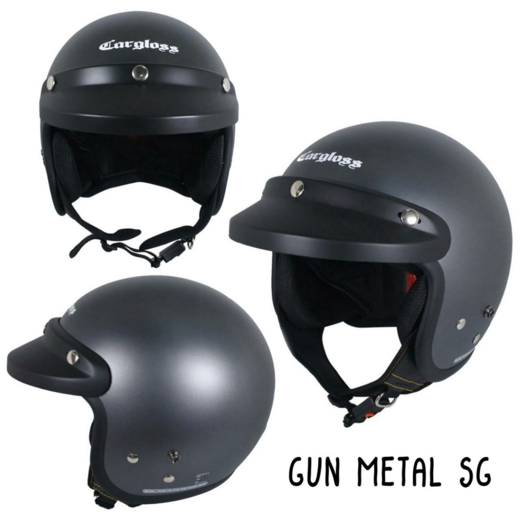 Otomotif > Aksesoris Pengendara Motor > Helm & Aksesoris Pengendara Motor > Helm Cargloss Original CFM Retro Army Half Face - Black Hitam Abu Doff Glossy Metalik