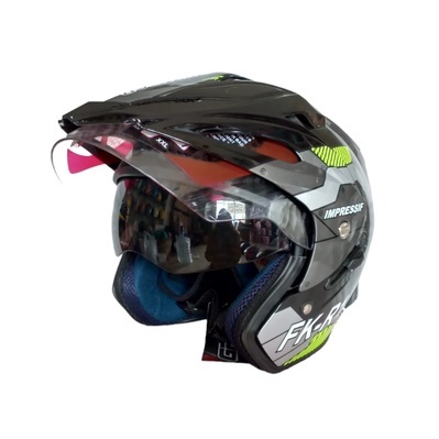 keterangan produk : helm sudah berlisensi SNI LOLOS QC bahan batok ABS asli bahan busa dalam bahan jersey premium lembut busa dalam bisa dilepas pasang pemakaian nyaman dipake kaca double visor siang malam