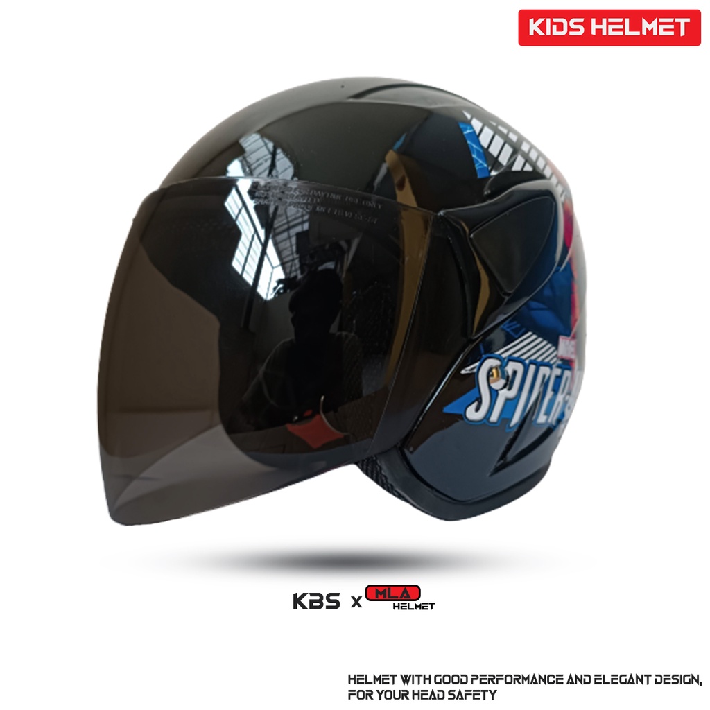 Otomotif > Aksesoris Pengendara Motor > Helm & Aksesoris Pengendara Motor > Helm Half Face Anak Junior KBS x MLA Motif Spiderman Hitam Untuk Usia Anak 3-7 tahun COD
