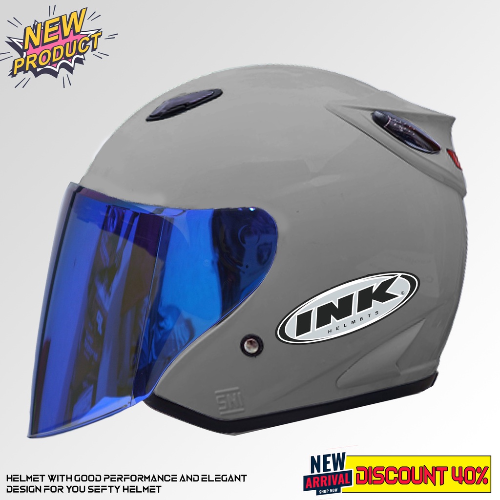 Otomotif > Aksesoris Pengendara Motor > Helm & Aksesoris Pengendara Motor > Helm Half Face INK CENTRO Gorilla Grey Kaca Visor Venom Blue Untuk Pria Dan Wanita Dewasa COD