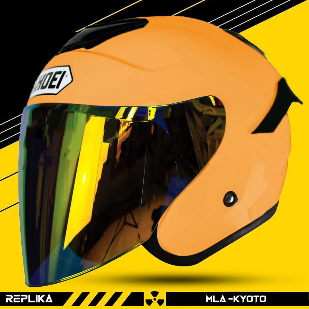Detail Helm Half Face MLA KYOTO ORANGE / Kaca Visor Venom Flat Blue-Gold-Silver-Hitam / Helm Pria Dan Wanita Dewasa PREMIUM COD