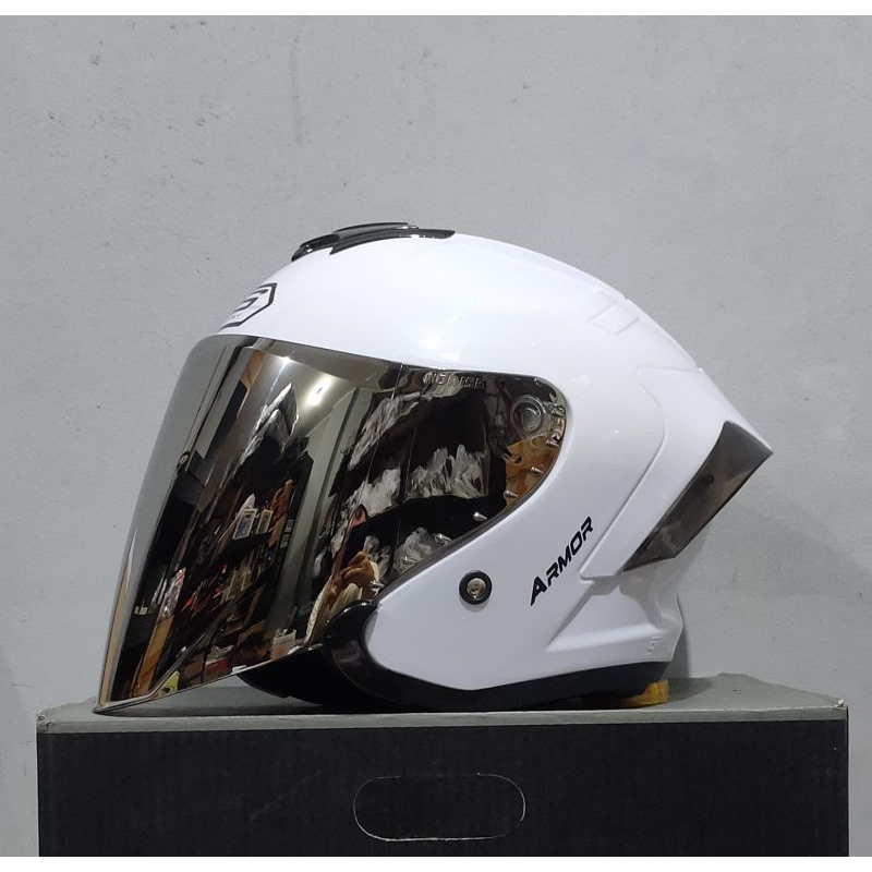 Helm Halfface JS ARMOR YAKUZA PAKET GANTENG VISOR SILVER MOTORCYCLE TERBARU STANDAR SNI