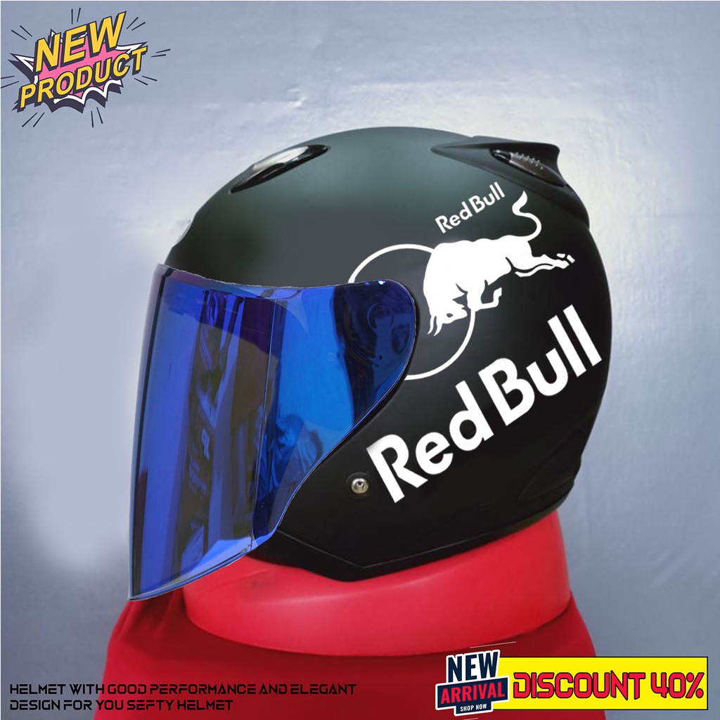 Otomotif > Aksesoris Pengendara Motor > Helm & Aksesoris Pengendara Motor > Helm INK Centro Half Face Dewasa Red Bull Hitam Glosy Kaca Visor Venom Flat Blue ORI COD