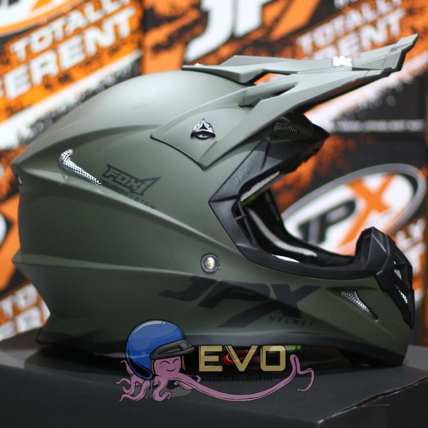 Otomotif > Aksesoris Pengendara Motor > Helm & Aksesoris Pengendara Motor > HELM JPX CROSS_SOLID - ARMY GREEN DOFF / BLACK + GOOGLE SNAIL (ONGKIR 2 KG) HELM JPX FOX1 PAKET GANTENG JPX ARMY DOFF JPX PAKET GOOGLE SNAIL HELM JPX TERBARU