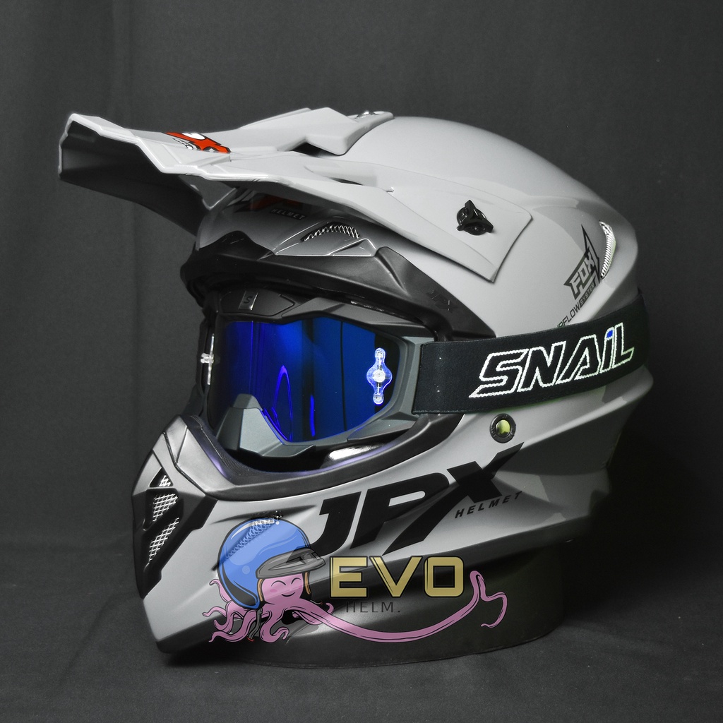 Detail HELM JPX CROSS_SOLID - GREY GLOSSY + GOOGLE SNAIL (ONGKIR 2 KG)