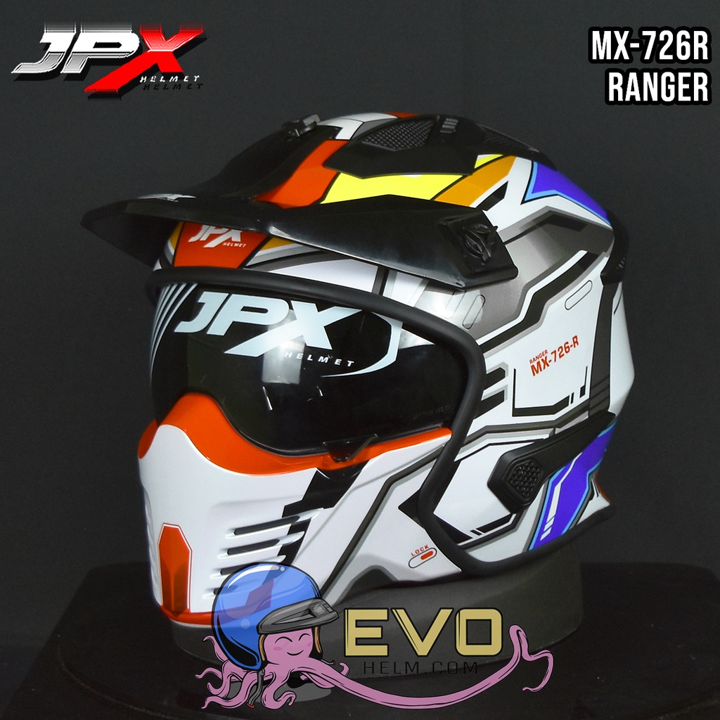 HELM JPX MX726R R05 RANGER MOTIF TERBARU ORIGINAL - JPX FULLFACE MX-726R MOTIF RANGER . . HARAP DI BACA!! JP MX-726R Helm Yang di Desain Bagi Kalian Yang Menyukai Helm Full Face Namun Bisa Half Face, Nah Ini Cocok Banget Untuk Kalian Yang Suka Riding di Kota. Senyawa ABS Yang Ringan dan Aman Dengan (Bahan Yang Sangat Fleksibel dan Tahan Lama) Bergabung Dengan Desain Garis Lunak Menambah Nuansa Kece di Helm Ini. MX 726-R Adalah Helm Yang Sangat Ideal Karena Nyaman dan Ringan Yang Bisa di Gunakan Untuk Berkendara Setiap Hari, dan Pastinya Tetap Kece dan Aman.