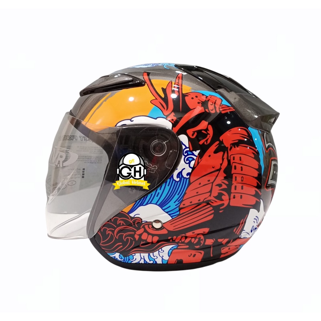 Detail HELM NVR R-26 SAMURAI GUNMET HALF FACE SINGLE VISOR HELM MURAH SNI HELM DEWASA DJMARU GALAXY R6 R1