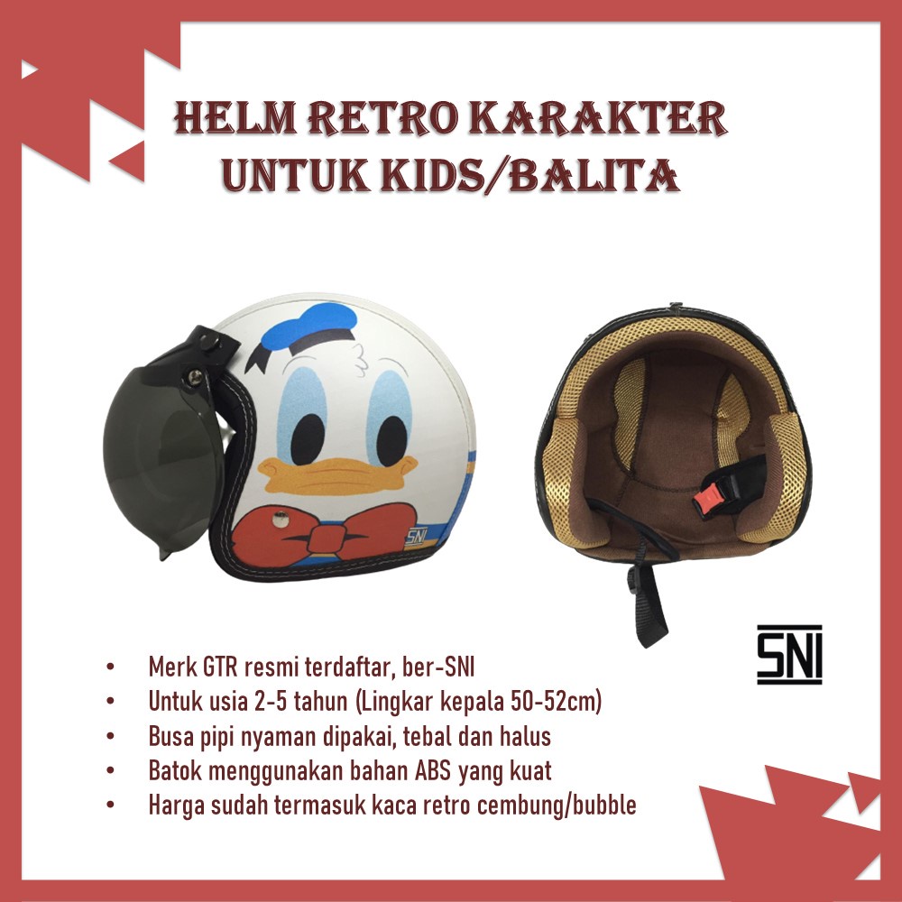 Detail Helm Retro Bogo Anak Full Kulit Printing KIDS Motif Karakter Murah