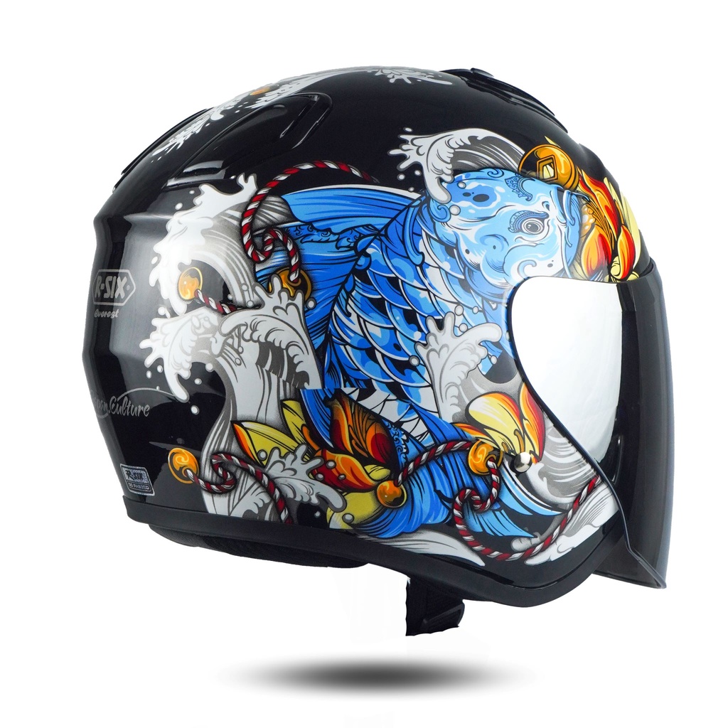 Detail Helm Rsix Motif Helm Motor pria Wanita Terbaru SNI warna hitam