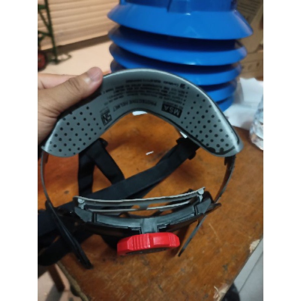 helm safety proyek MSA lokal FULL BRIM + fastrack ( putar ) tersedia warna - merah - kuning - hijau - biru - orange mohon tulis catatan warna pada pesanan. dan chat terlebih dahulu untuk request warna hijau dan orange tahun pembuatan mengikuti produk setiap bulan kita produksi jadi barang baru trus terimakasih