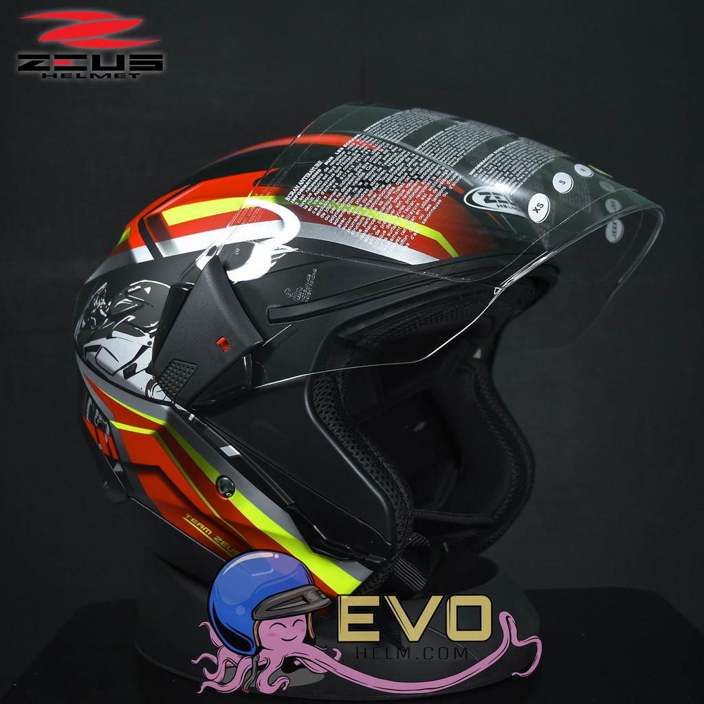 Detail HELM ZEUS 611 HALF FACE MOTIF TT-25 MATT BLACK RED ORIGINAL HELM ZEUS 611 MOTIF