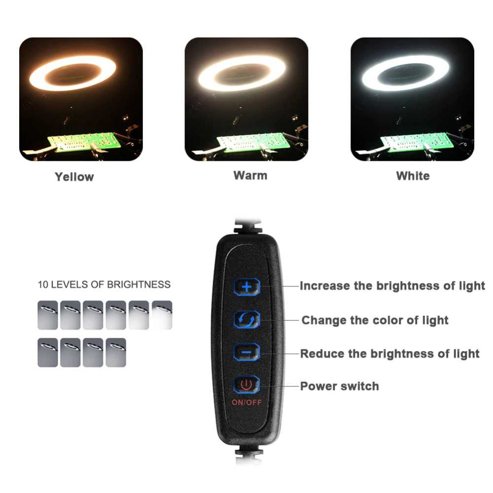 Kaca Pembesar + LED Untuk memudahkan Anda dalam memperbaiki komponen yang sangat kecil, kaca pembesar ini dapat melakukan pembesaran hingga 3x dari ukuran aslinya. Dilengkapi dengan lampu LED untuk membuat objek menjadi lebih jelas.Warna lampu LED dapat dubah-ubah antara warm white, neutral white dan cool white.