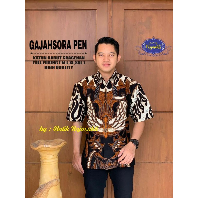 Hem Batik Lengan Pendek Pria Batik Pria Hitam Lengan Pendek GAJAHSORA PEN