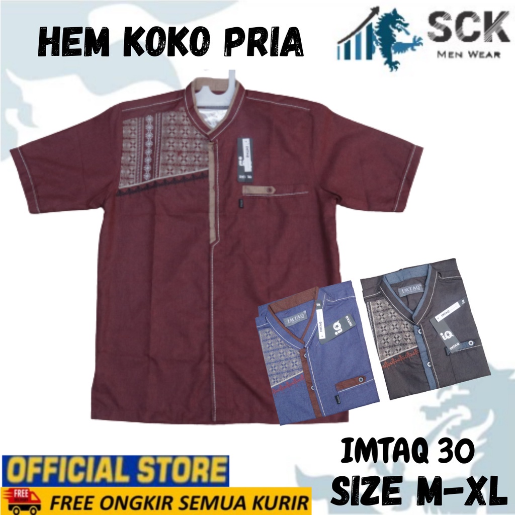 Fashion Muslim > Pakaian Muslim Pria > Atasan > Hem Koko Pria IMTAQ 30 BARU / Kemeja Lengan Pendek Motif Bordir Katun Warna / Pakaian Muslim Cowok - sckmenwear GROSIR
