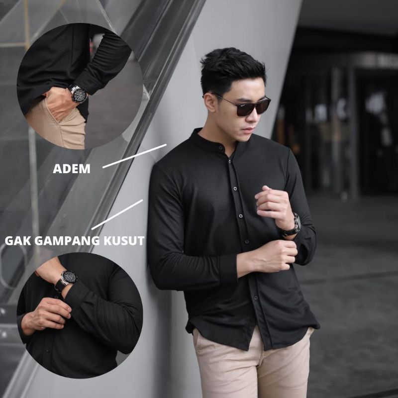 Hem polos pria slimfit Lengan panjang | kemeja polos panjang kantor | kemeja koko polos panjang | kemeja cowok lengan pnjang laqos pique kerah koko