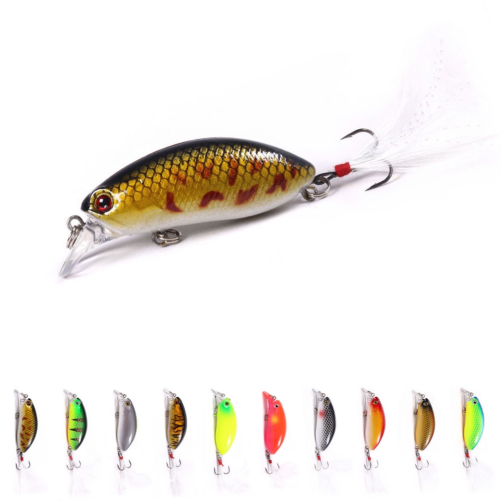 Detail HENGJIA 1PCS Fishing Lure 6cm 9.2g Minnow CrankBait Feather Hooks Artificial Wobbler Jig Swimbait 3D Eeyes For Fishing Tackle