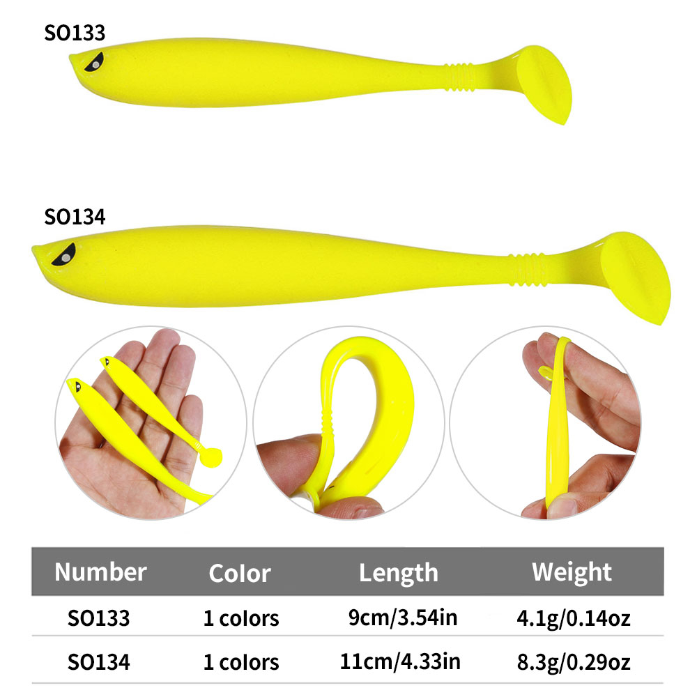 Detail Hengjia 6pcs/Pack T-tail Soft Lures 4g9cm 8g11cm Umpan Pancing Wobblers Kuning Aritificial Silicone Umpan Swimbait Bass Pike Tackle