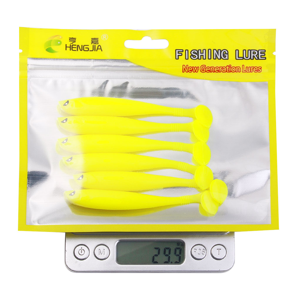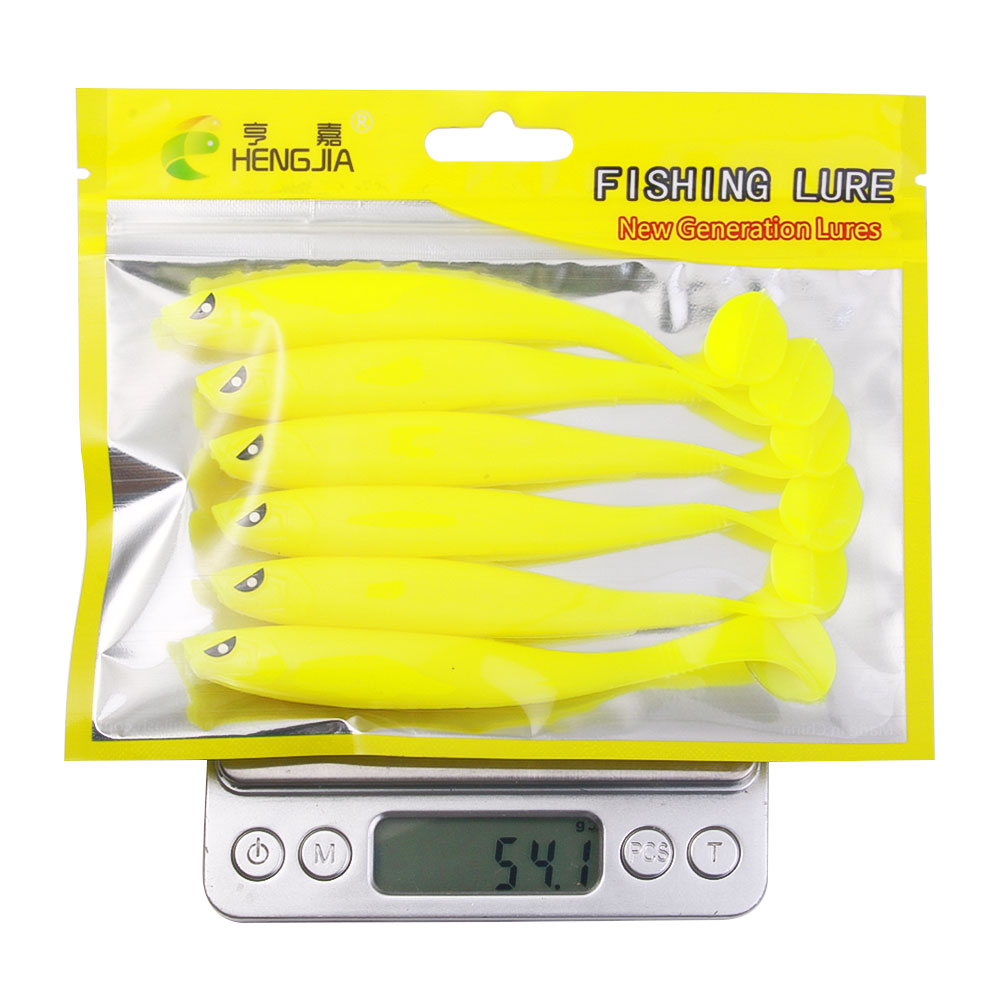 Hengjia 6pcs/Pack T-tail Soft Lures 4g9cm 8g11cm Umpan Pancing Wobblers Kuning Aritificial Silicone Umpan Swimbait Bass Pike Tackle