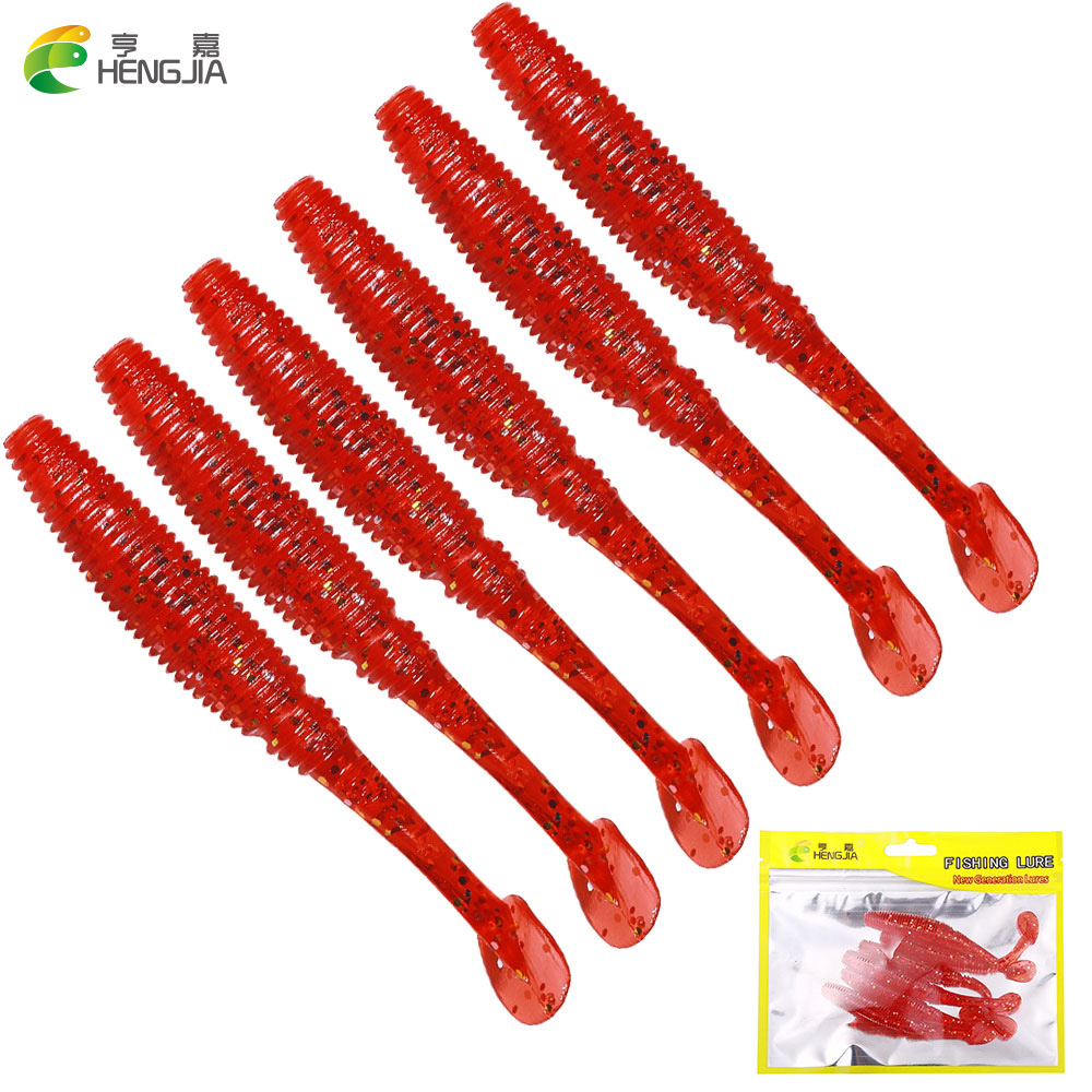 Detail Hengjia Baru 6 Pcs Umpan Lembut 4.5g 9.5 cm Memancing Umpan Wobblers Warna Merah Aritificial T Tail Silikon Umpan Swimbait Bass Pike Tackle