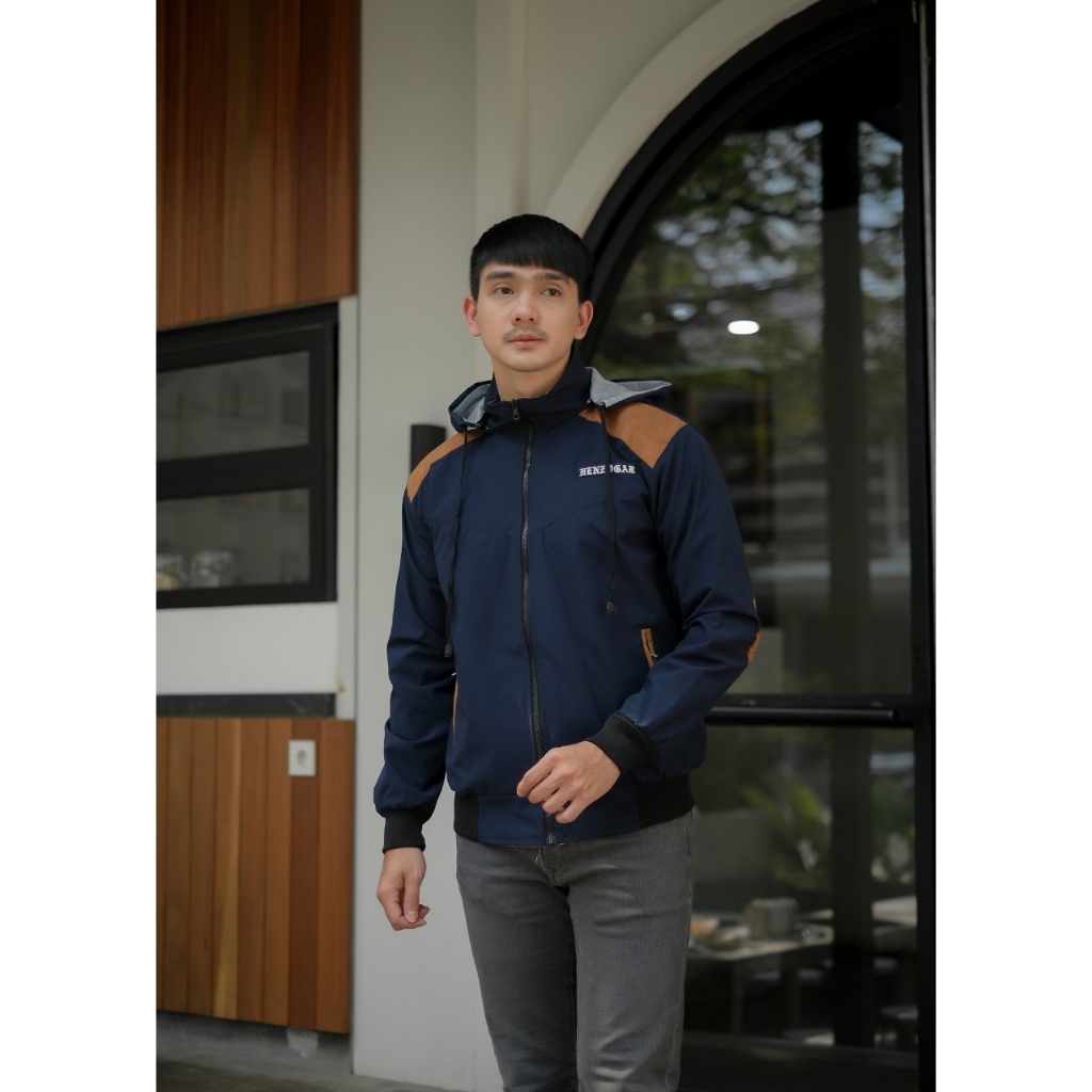Detail HENZO Jaket Pria Import Outdor Distro Jacket Taslan warna Navy HJT052