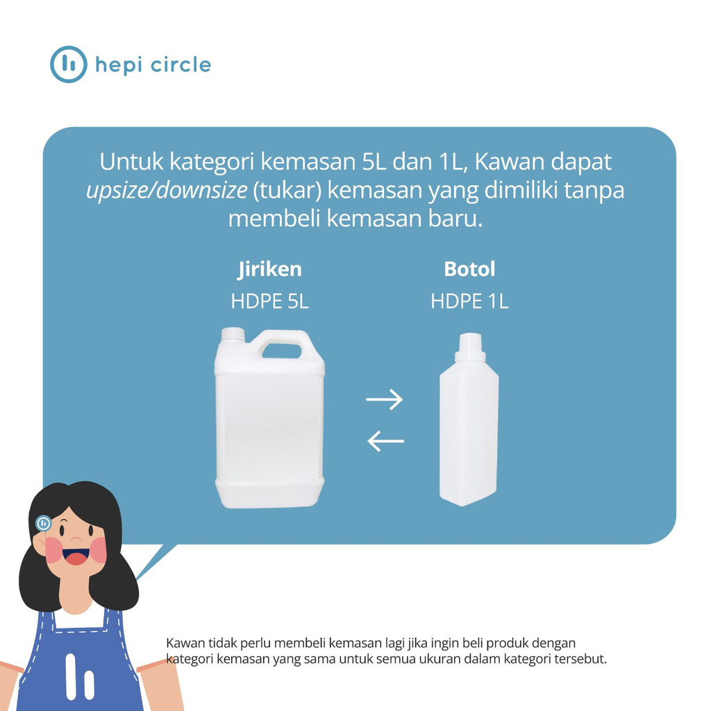 Cairan pencuci piring Hepi Circle membersihkan dan menghilangkan bau pada piring dan perabot dapur dengan tetap menjaga kelembutan tangan karena kandungan pelembab dalam formulanya.