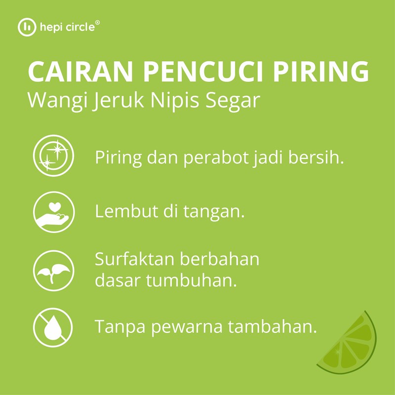 Detail Hepi Circle Cairan Pencuci Piring Wangi Jeruk Nipis 1 L - Kemasan + Isi