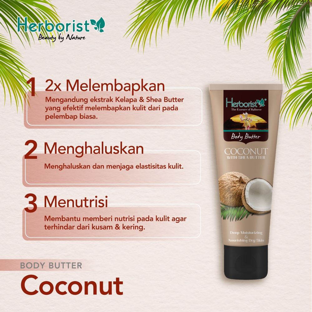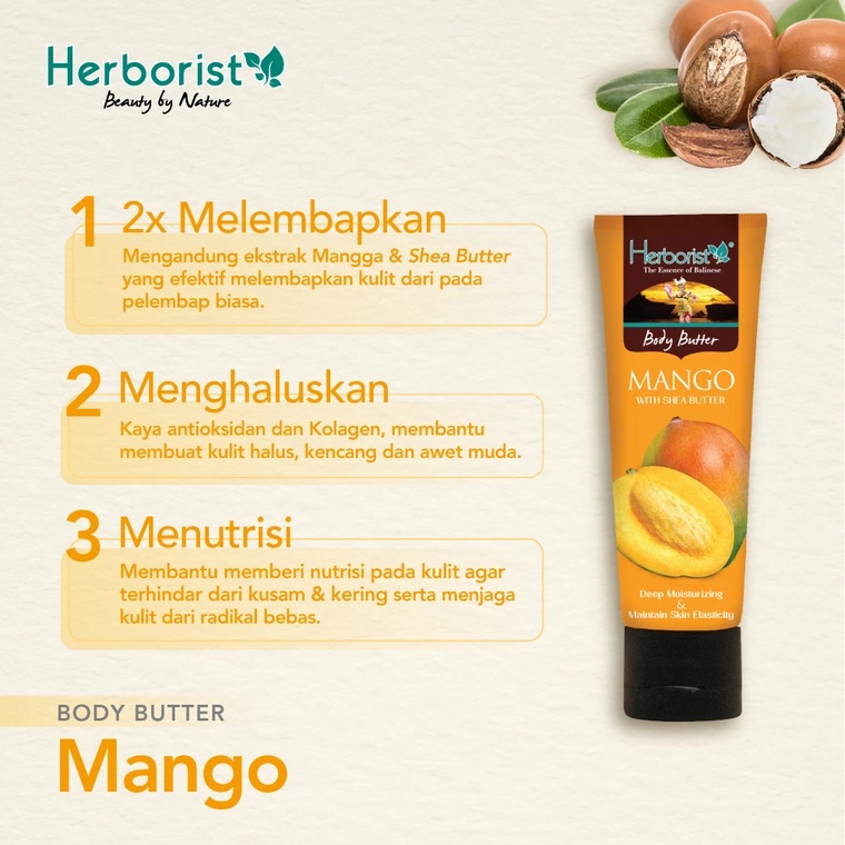 Perawatan & Kecantikan > Perawatan Tubuh > Body Cream, Body Lotion & Body Butter > HERBORIST Body Butter Indonesia / 80g / With Shea Butter / Strawberry Sorbet Frangipani Chocolate Coconut Zaitun Matcha Milk Mango Banana / Deep Moisturizing Brightening Glowing Melembabkan Mencerahkan / Skincare Care Lotion Gel Scrub Peeling Kulit Tubuh