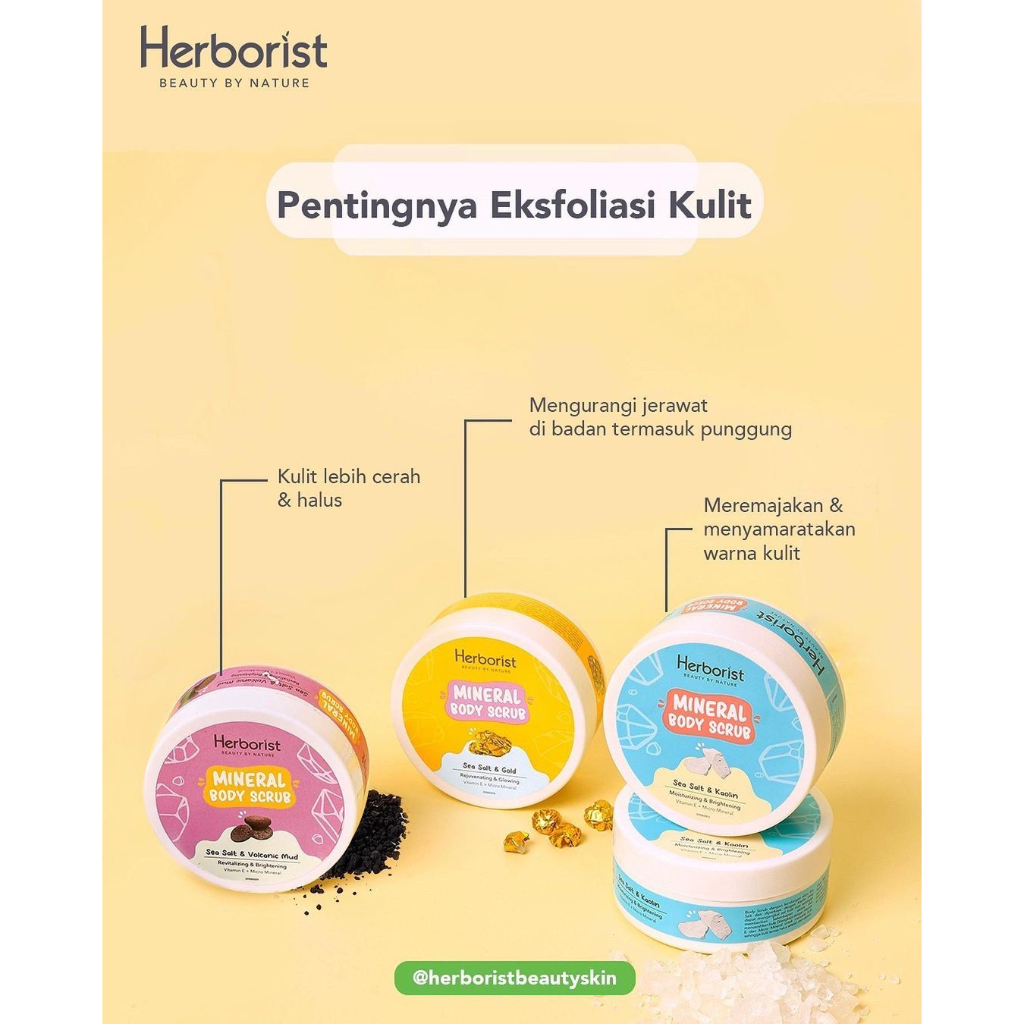 Detail HERBORIST Mineral Body Scrub Indonesia / 100g 200g / Sea Salt Kaolin Volcanic Mud Gold / Moisturizing Revitalizing Rejuvenating Brightening Vit E & C + Micro Mineral / Exfoliator Cleansing / Exfoliating Peeling / Skincare Body Care Gel Lotion Kulit Tubuh