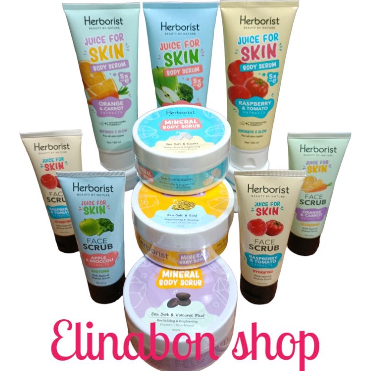 Herborist Paket Isi 3 Body Serum Body Scrub Face Scrub Isi Paket terdiri dari 3item produk: 1.Herborist Juice For Skin Body Serum 180ml 2.Herborist Mineral Body Scrub 200gr 3.Herborist Juice For Skin Face Scrub 60gr