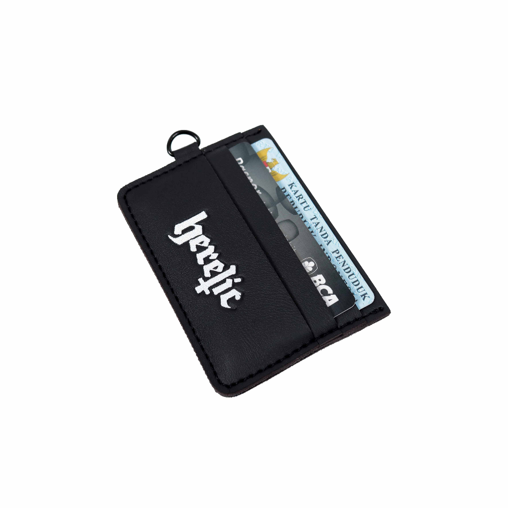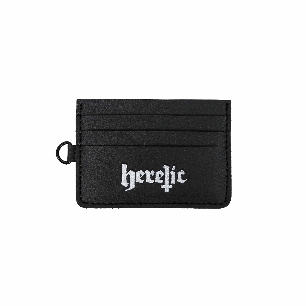 Black faux leather keychain wallet, black steel carabiner with debossed Heretic's logo. Wallet dimension: 10cm x 4,5cm.