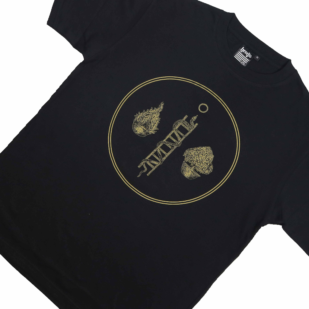 Heretic x Daarchlea (Malaysian band) black cotton combat 30s tees with plastisol ink.