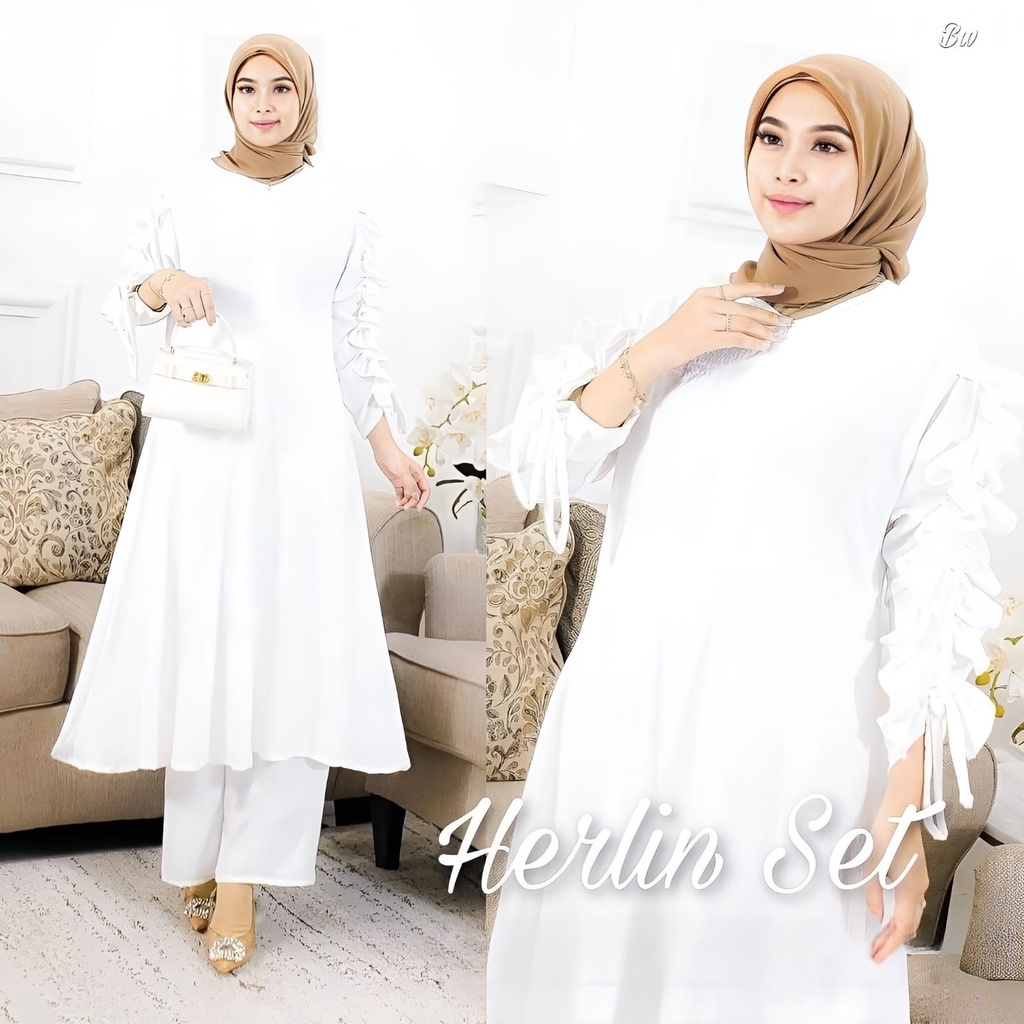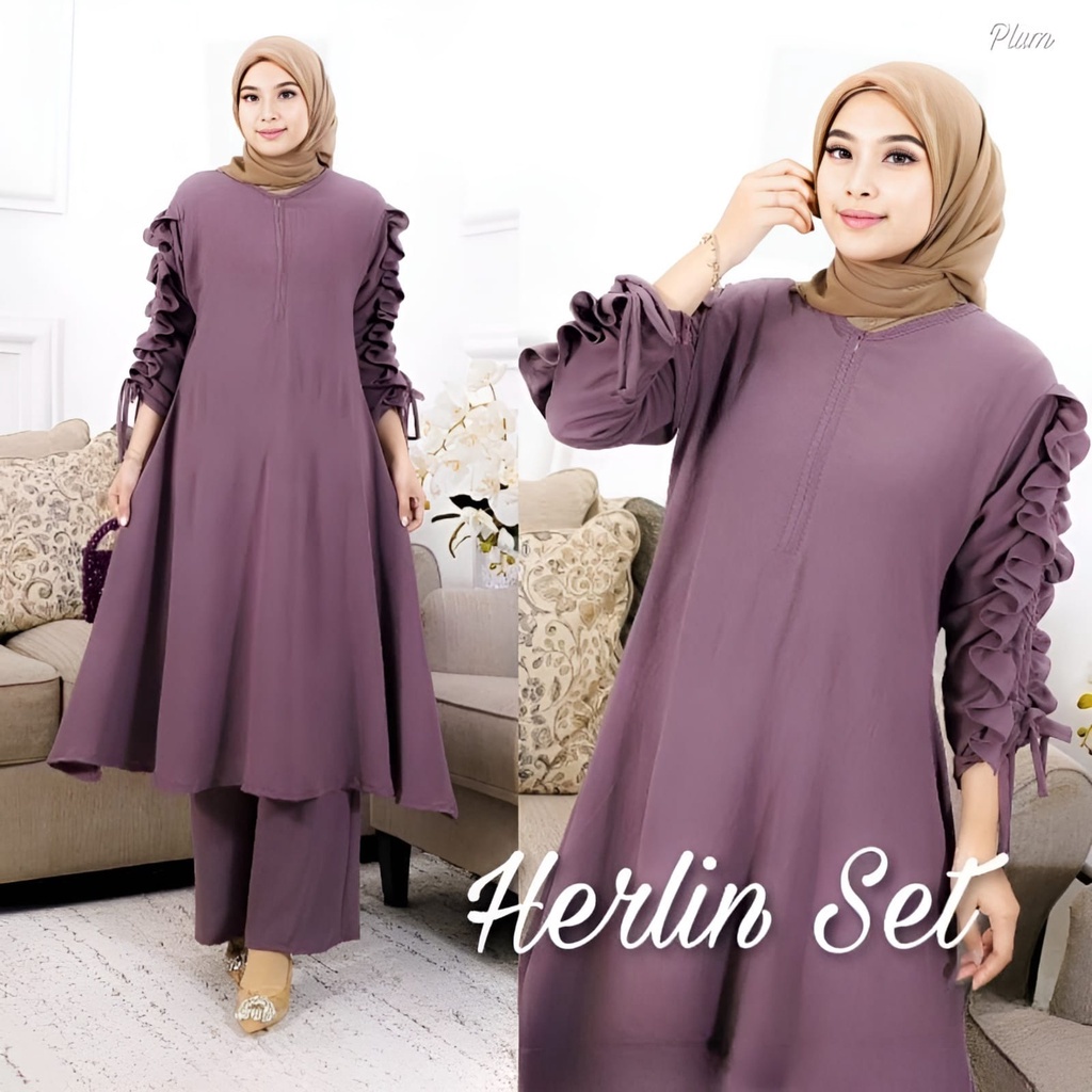 Detail Herlin One Set Fit To XL Besar l Setelan Wanita Muslim Casual Daily l Stelan Baju Kondangan 2in1