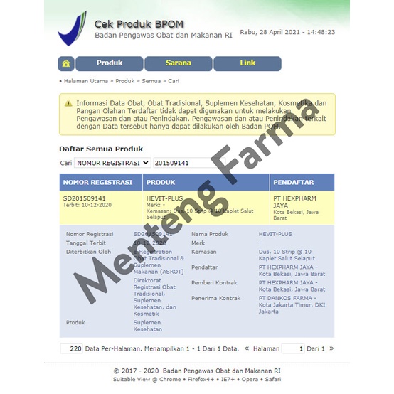 Cara Pemakaian : Dewasa dan anak 12 tahun atau lebih : 1 kaplet sehari atau sesuai petunjuk dokter