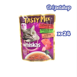 (1dus isi 24pcs) Whiskas Tasty Mix Pouch Sachet 70gr - Seafood Cocktail Wekame Seaweed in Gravy
