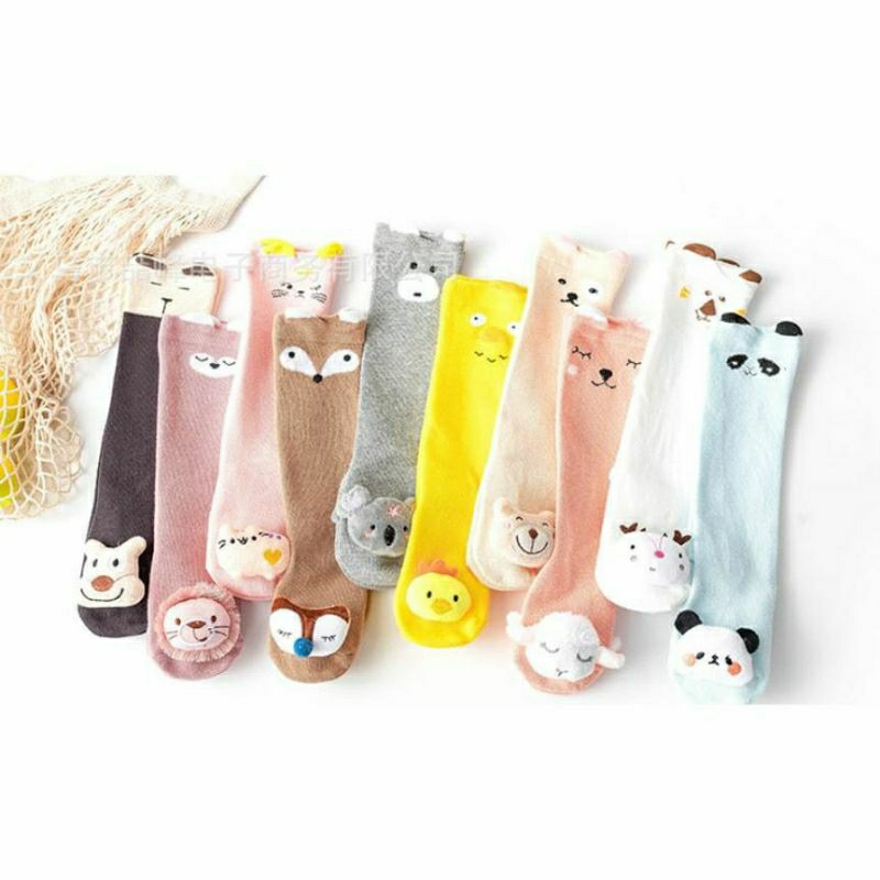 Kaos kaki panjang bayi dengan aksen boneka timbul. Ada berbagai variasi gambar Animal. Dengan Bahan Katun Yang Lembut & Nyaman Untuk Bayi Anda. Cocok untuk di pakai sehari2 untuk menjaga kehangatan kaki bayi.