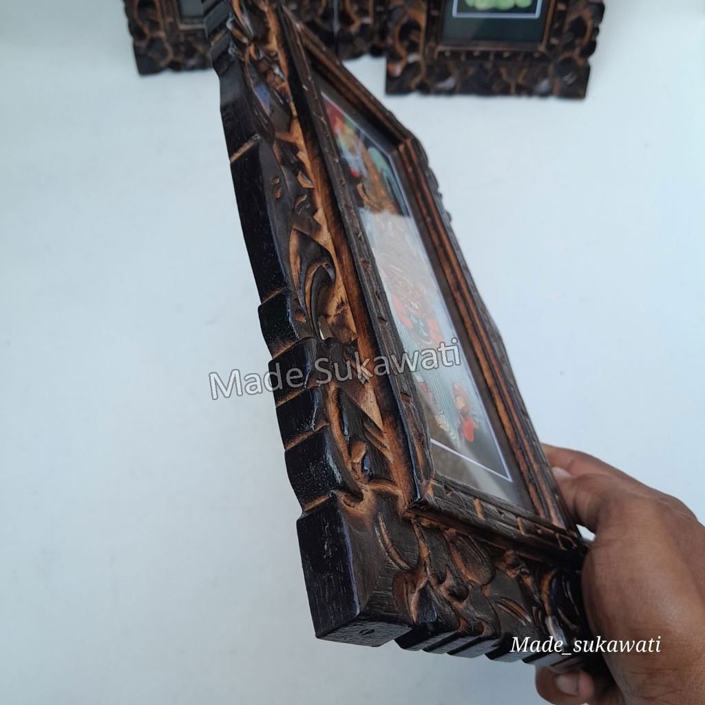 Kerajinan tangan Bingkai ukiran kayu dengan hiasan lukisan khas Bali,