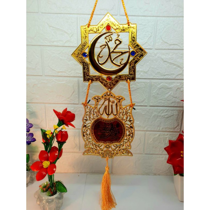 hiasan dinding kaligrafi islam untuk memperindah tampilan ruangan anda.. dengan bahan plastik tebal berwarna emas yang mewah membuat ruangan anda tampak ellegant dan religi dalam waktu bersamaan..