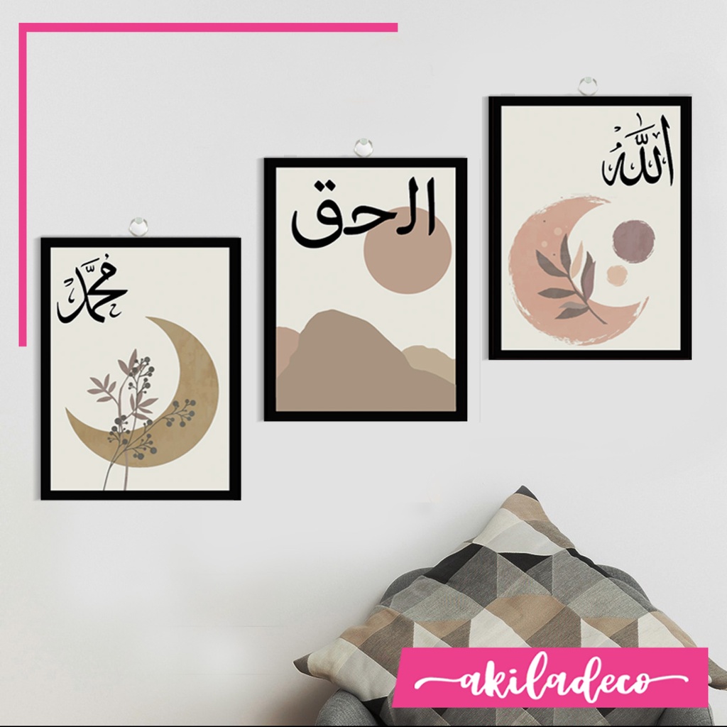 Detail Hiasan Dinding Nordic Minimalis Dekorasi Ruang Tamu Poster Islami Kaligrafi Allah Muhammad