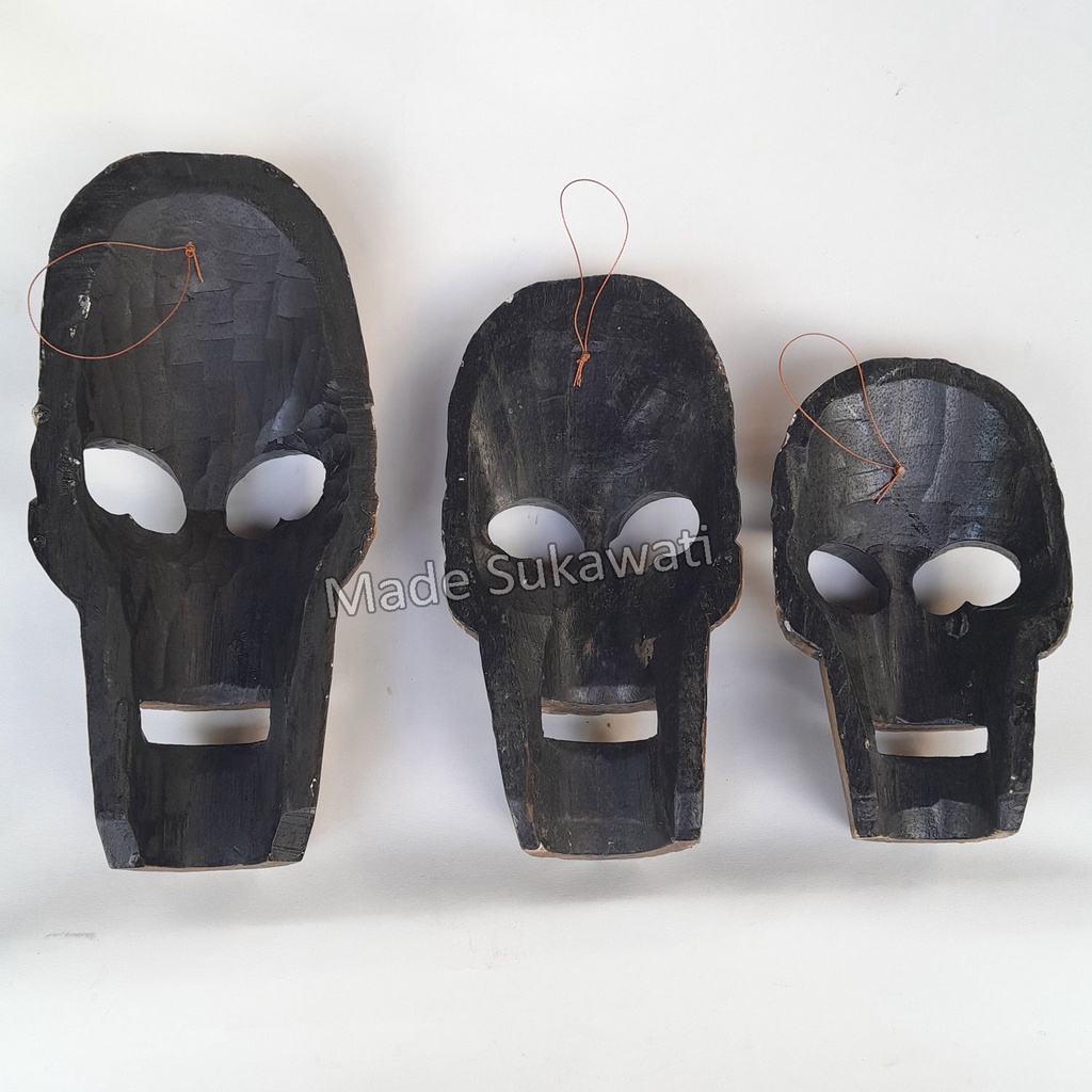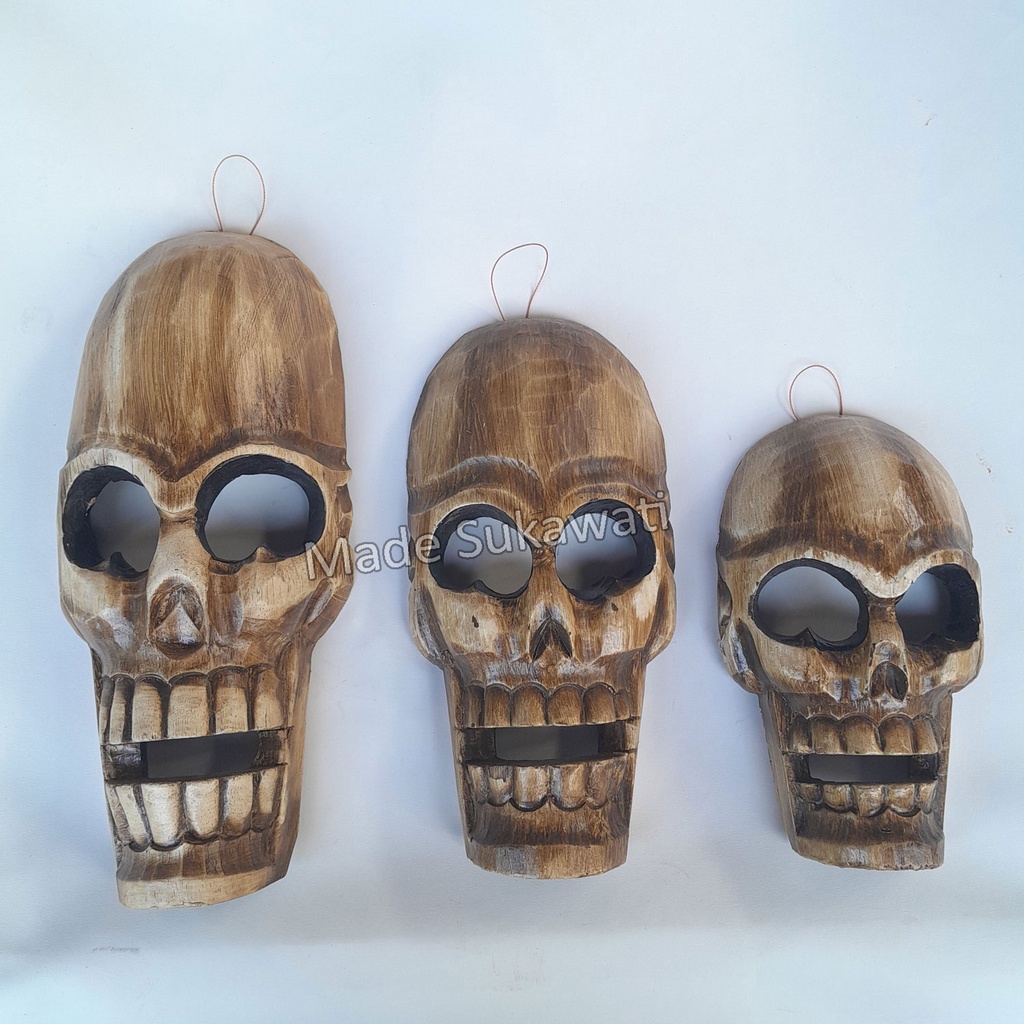 Harga untuk 1pcs, Kerajinan Hiasan dinding, ukiran kayu handmade khas Bali, Motif topeng Tengkorak Skull.,, Pilihan: -S panjang -+20cm, -M panjang -+25cm, -L panjang -+30cm,