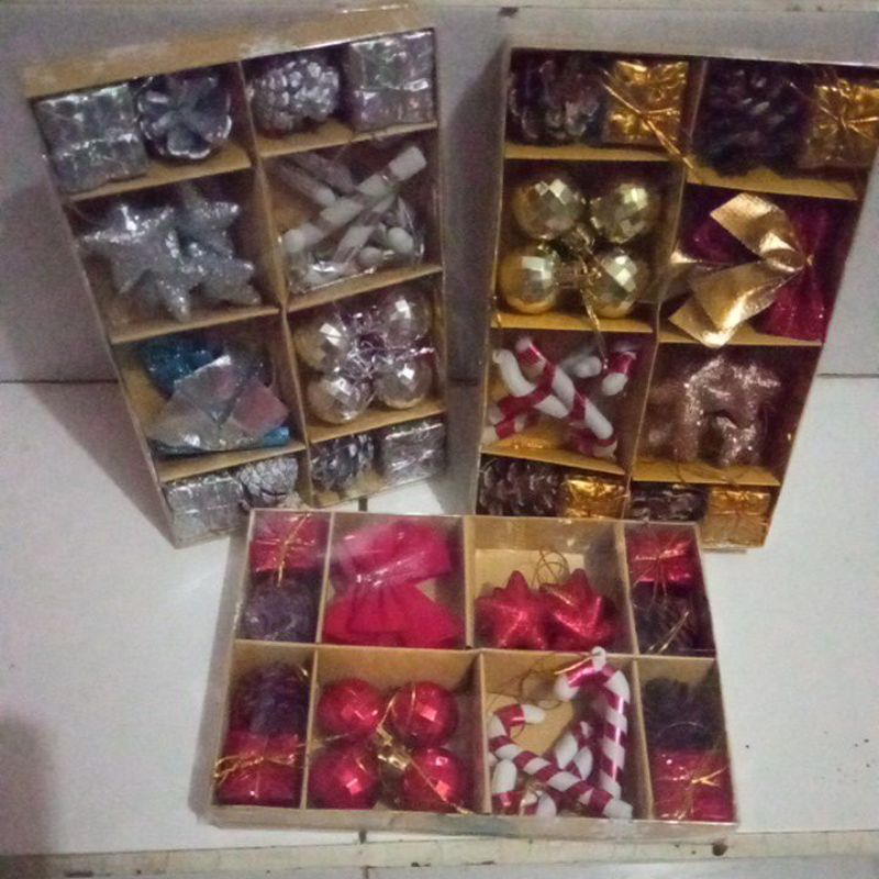 Detail hiasan pohon natal gantung dekorasi natal isi 24pcs mix