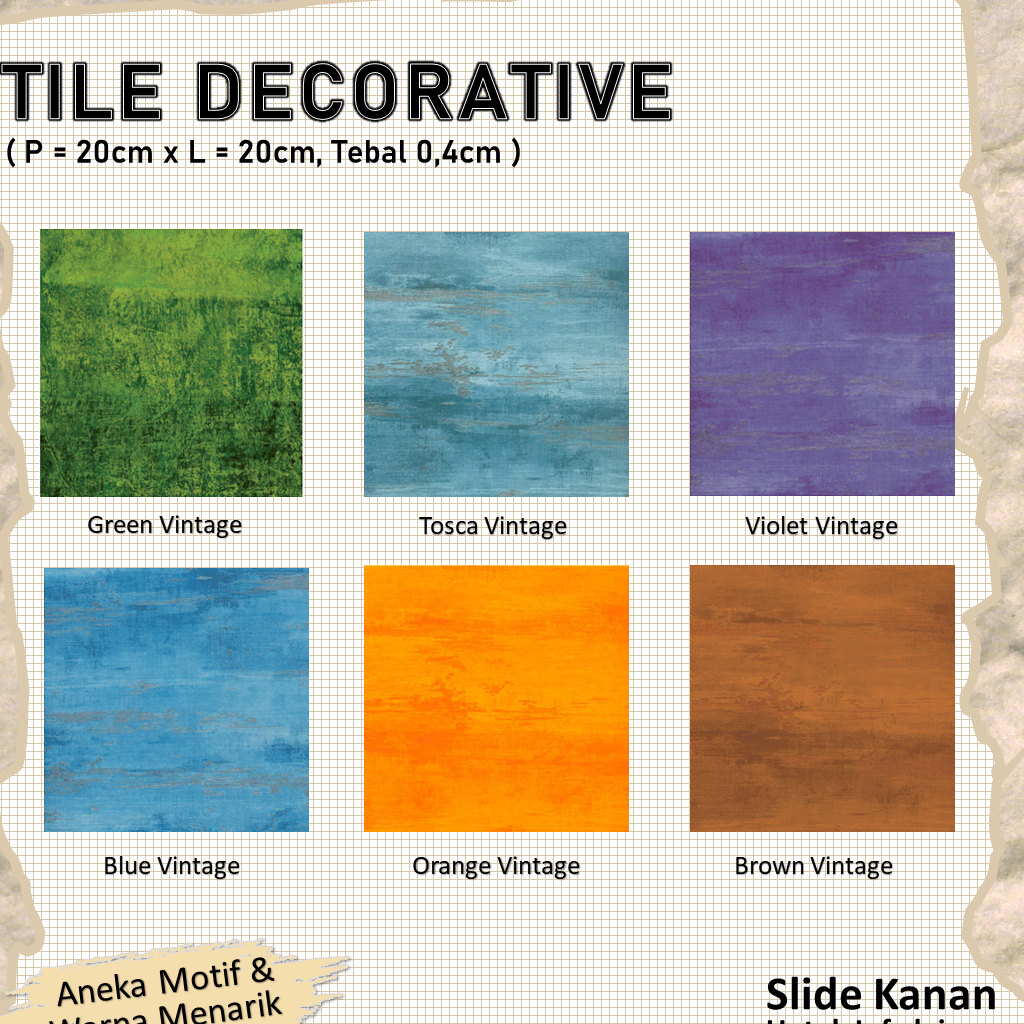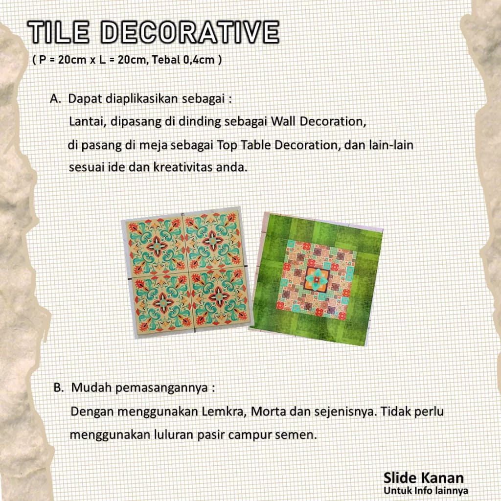 Detail Hiasan Tile Decorative 20cm x 20cm x 0,4cm lantai, wall decoration, top table, dll Motif Lucu