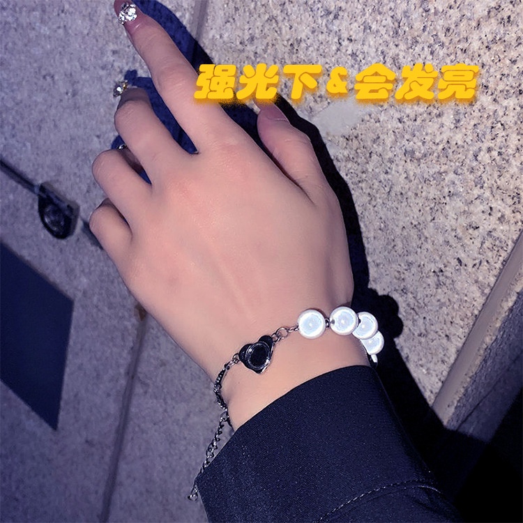 Detail High-end Niche Cahaya Mewah Reflektif Mutiara Jahitan Silang Gelang Perempuan Hip-Hop All-Match Pasangan