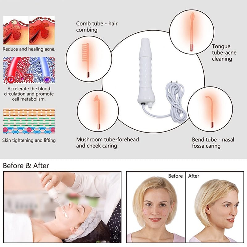 High Frequency Portable Perawatan Wajah Anti Aging Anti Acne Frekuensi Tinggi Beauty Membantu menenangkan saraf dan memiliki fungsi analgesia. Menghasilkan ozon untuk sterilisasi, dapat membantu penyembuhan luka dan mengendalikan pori-pori. Memperbaiki sekresi, nilai PH, menetralitas kulit. Memperlancar peredaran darah dan meningkatkan metabolisme. Memiliki fungsi anti-penuaan, anti-kerut dan pengencangan